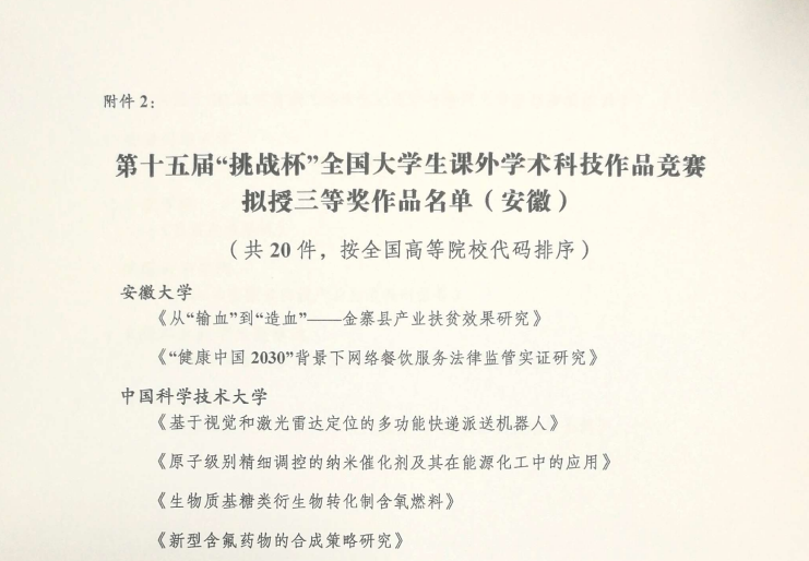 安徽新華學(xué)院學(xué)子榮獲第十五屆“挑戰(zhàn)杯”全國大學(xué)生課外學(xué)術(shù)科技作品競賽三等獎