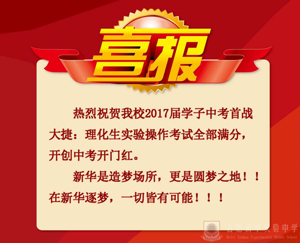 合肥新華實(shí)驗(yàn)中學(xué)理化生實(shí)驗(yàn)操作考試首戰(zhàn)大捷全部滿分
