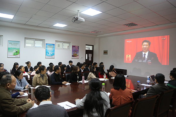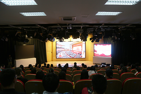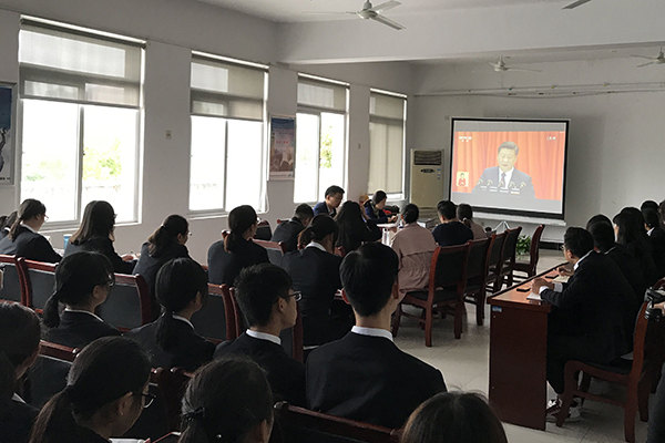 在聆聽(tīng)習(xí)近平總書記代表第十八屆中央委員會(huì)向黨的十九大作報(bào)告的過(guò)程中,各個(gè)會(huì)場(chǎng)秩序井然,大家聚精會(huì)神聽(tīng)報(bào)告、全神貫注作筆記,不時(shí)激動(dòng)鼓掌。會(huì)后,師生們情緒高漲,暢談學(xué)習(xí)體會(huì)。