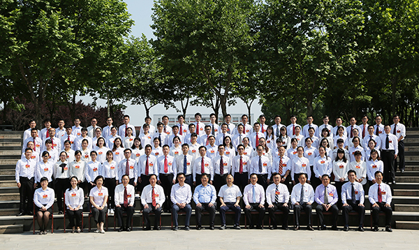 新華集團(tuán)?安徽新華學(xué)院全體黨代表在如琴湖畔合影留念