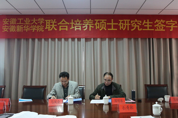 最后,馬鳳余與鄭明東分別代表安徽新華學院和安徽工業(yè)大學簽訂了合作協(xié)議。