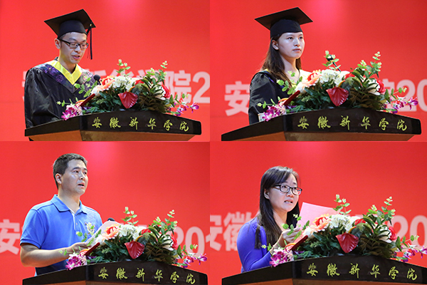 校長(zhǎng)石秀和教授在會(huì)上深情致辭。他代表學(xué)校全體師生員工向圓滿完成大學(xué)四年學(xué)業(yè),即將踏上全新征途的2015屆畢業(yè)生們表示衷心的祝賀。他說(shuō),大學(xué)是人生中最關(guān)鍵的旅程,2015屆畢業(yè)生四年來(lái)在這里成人、成長(zhǎng)、成才,是學(xué)校的驕傲;未來(lái),母校將圍繞建設(shè)地方應(yīng)用型高水平大學(xué)的目標(biāo),全面深化教育教學(xué)改革,不斷提高人才質(zhì)量,為社會(huì)的發(fā)展提供更有利的人才支撐,母校更將成為學(xué)生的驕傲!石秀和希望畢業(yè)生們?cè)谶@個(gè)全球化浪潮洶涌而來(lái),各種思潮相互碰觸的變革年代,能夠與時(shí)俱進(jìn),緊緊跟上時(shí)代的潮流,勇敢克服生活的困境以外,更能夠堅(jiān)守自我,做一個(gè)新時(shí)代背景下大寫的人,做一個(gè)對(duì)中華文明的傳承與進(jìn)步起到推動(dòng)作用的新青年。希望畢業(yè)生們要珍惜青春,努力奮斗,孜孜不倦學(xué)習(xí),勤勉奮發(fā)干事,用有限的青春去創(chuàng)造無(wú)限的可能,用實(shí)際行動(dòng)架起理想與現(xiàn)實(shí)之間的橋梁;要不斷創(chuàng)新,爭(zhēng)當(dāng)創(chuàng)客,不斷打破思維的慣性,讓創(chuàng)新融入畢業(yè)生們的血液,用創(chuàng)意改變世界的未來(lái);要敢于負(fù)責(zé),勇于擔(dān)當(dāng),畢業(yè)生們只有承擔(dān)起自己應(yīng)當(dāng)承擔(dān)的社會(huì)責(zé)任、職業(yè)責(zé)任、家庭責(zé)任,才能實(shí)現(xiàn)自身良好生存與自由發(fā)展,才能收獲成功的事業(yè)與美滿的家庭,才能在未來(lái)的發(fā)展道路上健步如飛,走的更快、更好、更遠(yuǎn);要愛(ài)崗敬業(yè),甘于奉獻(xiàn),始終保持昂揚(yáng)向上的工作激情,勇于挑起重?fù)?dān),敢于奮勇?tīng)?zhēng)先,廉潔奉公,吃苦耐勞,在勞動(dòng)中發(fā)現(xiàn)廣闊的天地,在勞動(dòng)中體現(xiàn)價(jià)值、展現(xiàn)風(fēng)采、感受快樂(lè),以實(shí)際行動(dòng)服務(wù)社會(huì),報(bào)效國(guó)家。最后,石秀和衷心祝愿每一位畢業(yè)生都能夠前程似錦,幸福平安,希望同學(xué)們?;丶铱纯矗蝗缂韧仃P(guān)注母校,關(guān)心校友。新華,永遠(yuǎn)是同學(xué)們停泊的港灣,是同學(xué)們堅(jiān)強(qiáng)的后盾和前進(jìn)的動(dòng)力!