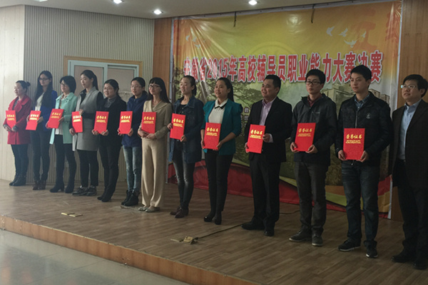 安徽新華學(xué)院參賽輔導(dǎo)員憑借自身過硬的素質(zhì)和從事輔導(dǎo)員工作的豐富經(jīng)驗(yàn),順利完成了各個(gè)環(huán)節(jié)的比賽。經(jīng)過激烈角逐,王強(qiáng)亞和潘馳群兩位老師憑借出色表現(xiàn),以優(yōu)異成績(jī)脫穎而出,分別獲得2015年安徽省高校輔導(dǎo)員職業(yè)能力比賽復(fù)賽(合肥賽區(qū))一等獎(jiǎng)和三等獎(jiǎng),取得了歷史最好成績(jī)。