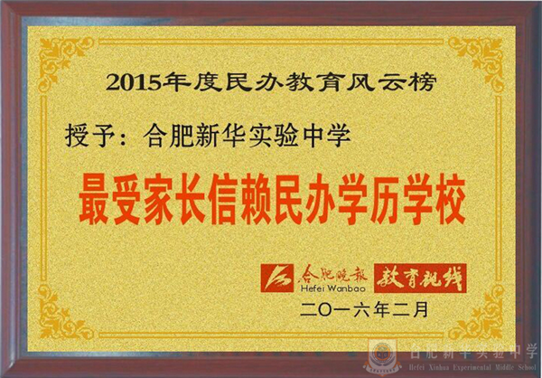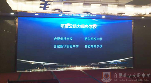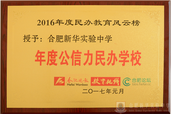 授予合肥新華實(shí)驗(yàn)中學(xué)“年度公信力民辦學(xué)?!?/p>