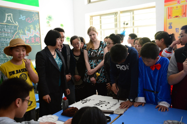 隨后,Emily校長(zhǎng)觀看了學(xué)生書(shū)法、國(guó)畫(huà)、勾勒臉譜的現(xiàn)場(chǎng)演示,對(duì)于中國(guó)傳統(tǒng)文化表現(xiàn)出濃厚的興趣。同學(xué)們把各自作品送給Emily校長(zhǎng)作為紀(jì)念,Emily愉快地接受,并與同學(xué)們開(kāi)心地與同學(xué)們合影。